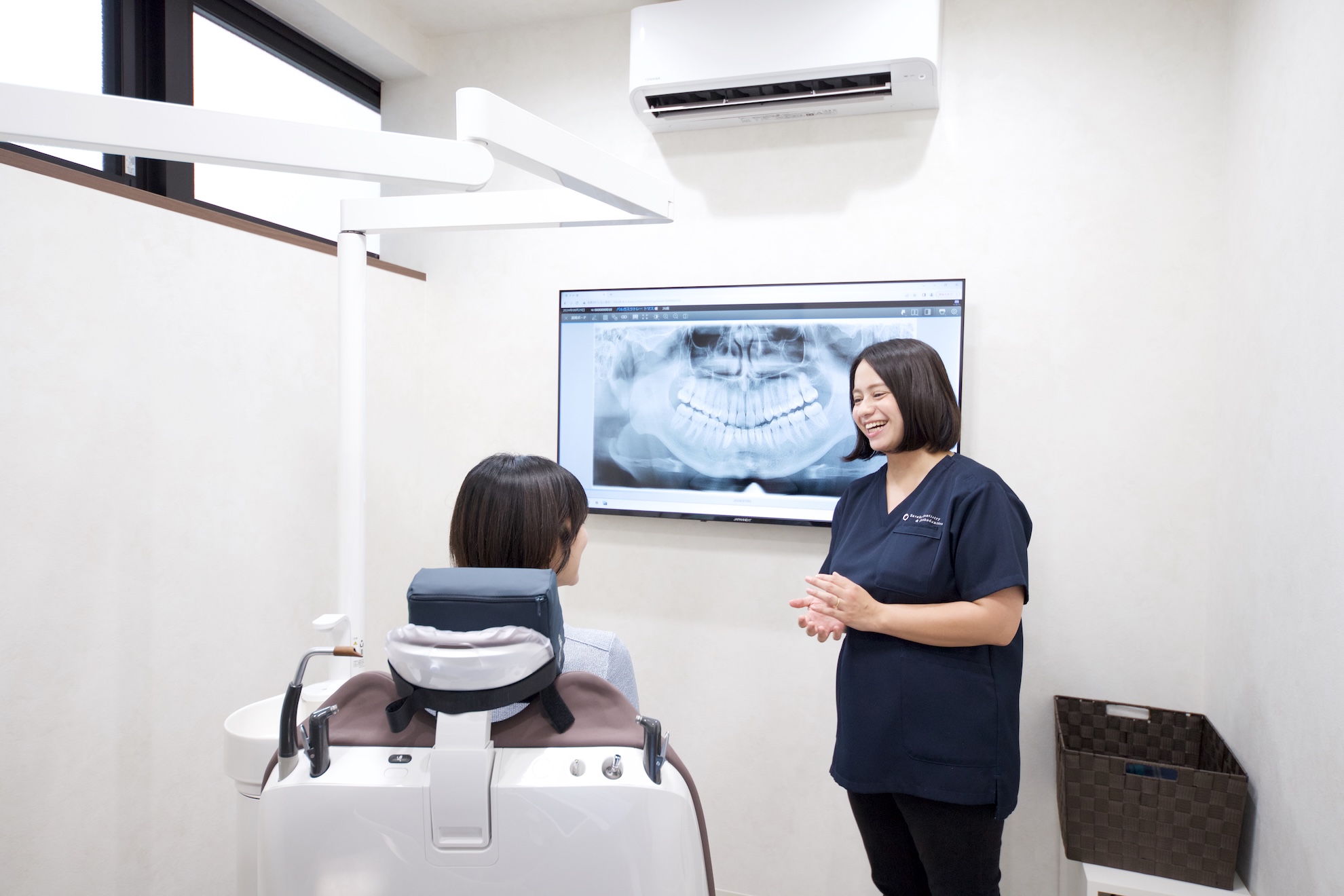 丁寧なカウンセリングお口全体の状態を検査します。歯並びだけでなく、噛み合わせに関してもしっかりと検査を行います。その後は検査結果を元に丁寧なカウンセリングを行います。疑問点や不安なポイントを1つずつ解決してきます。