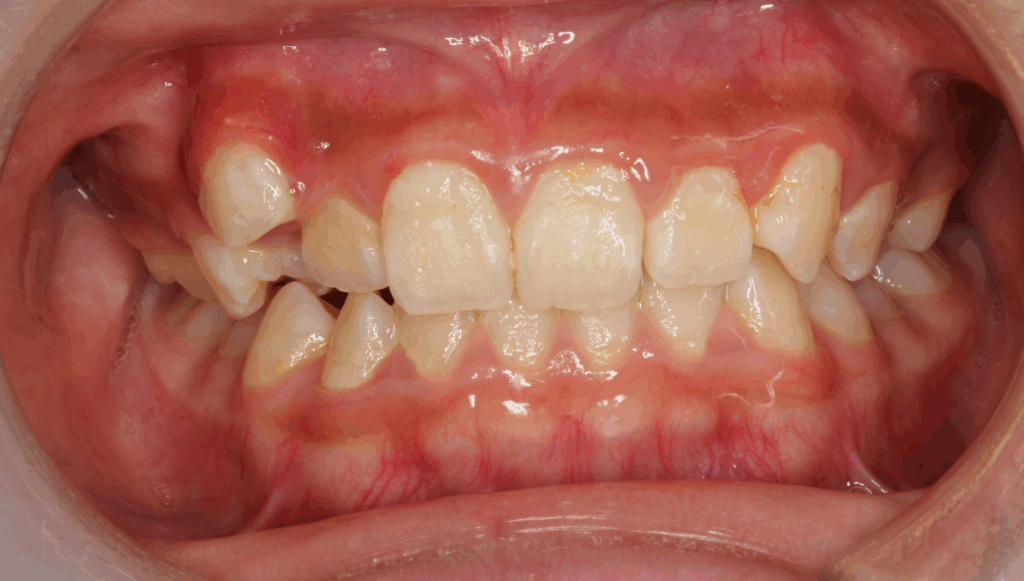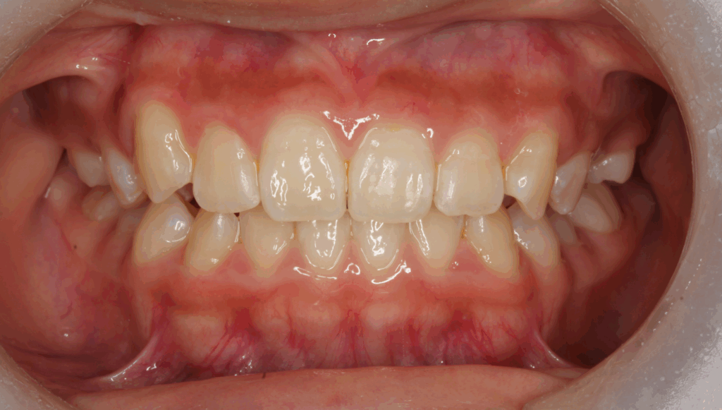 | 診断 | 骨格性Ⅰ級、歯性Ⅱ級、前歯部叢 |